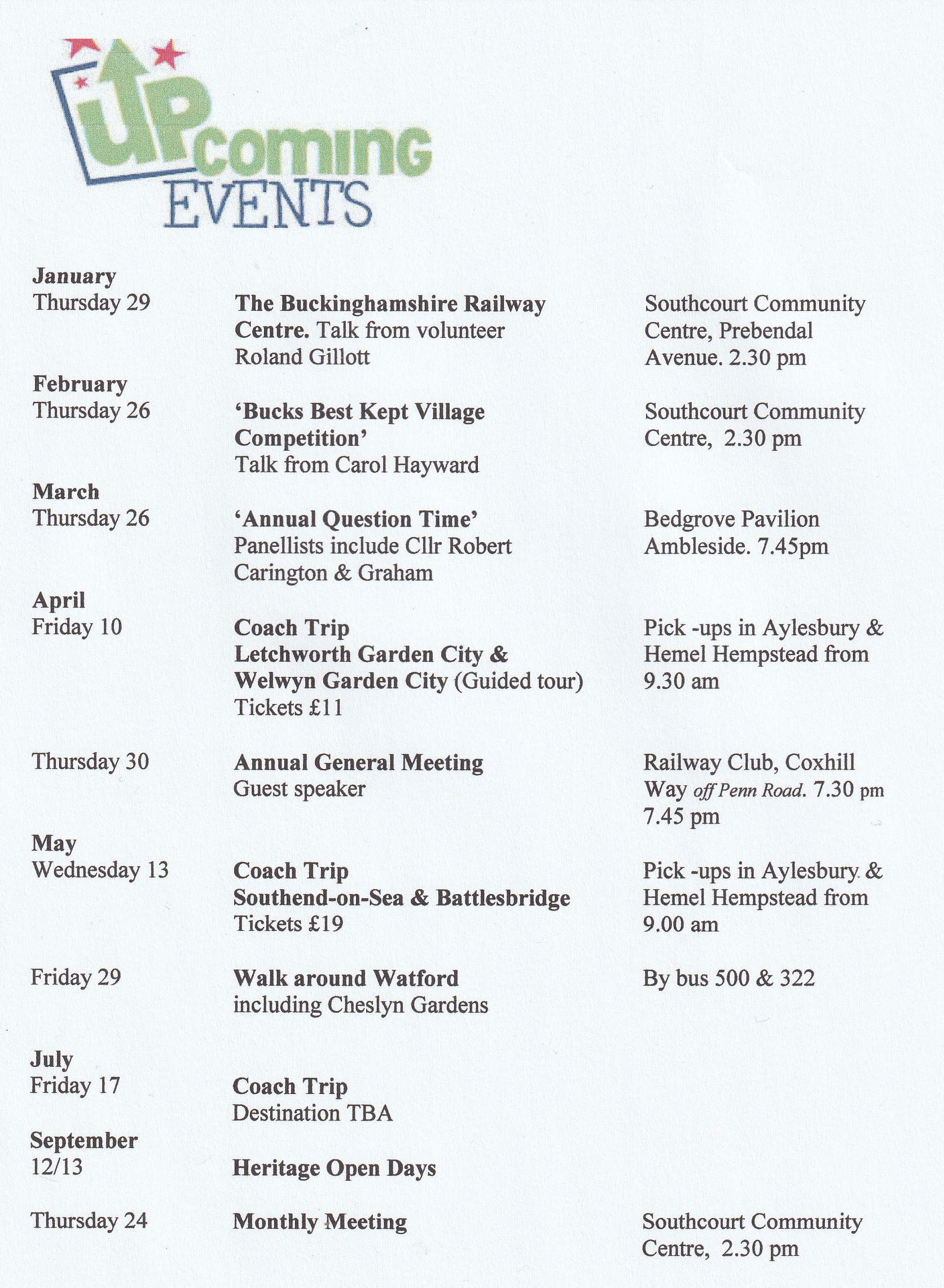 Download the Forthcoming Events document from here
